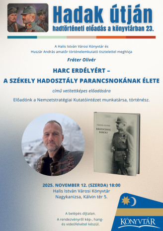 2025. november 12. (szerda) 18 óra: Hadak útján 23. Fráter Olivér: Harc Erdélyért – A székely hadosztály parancsnokának élete