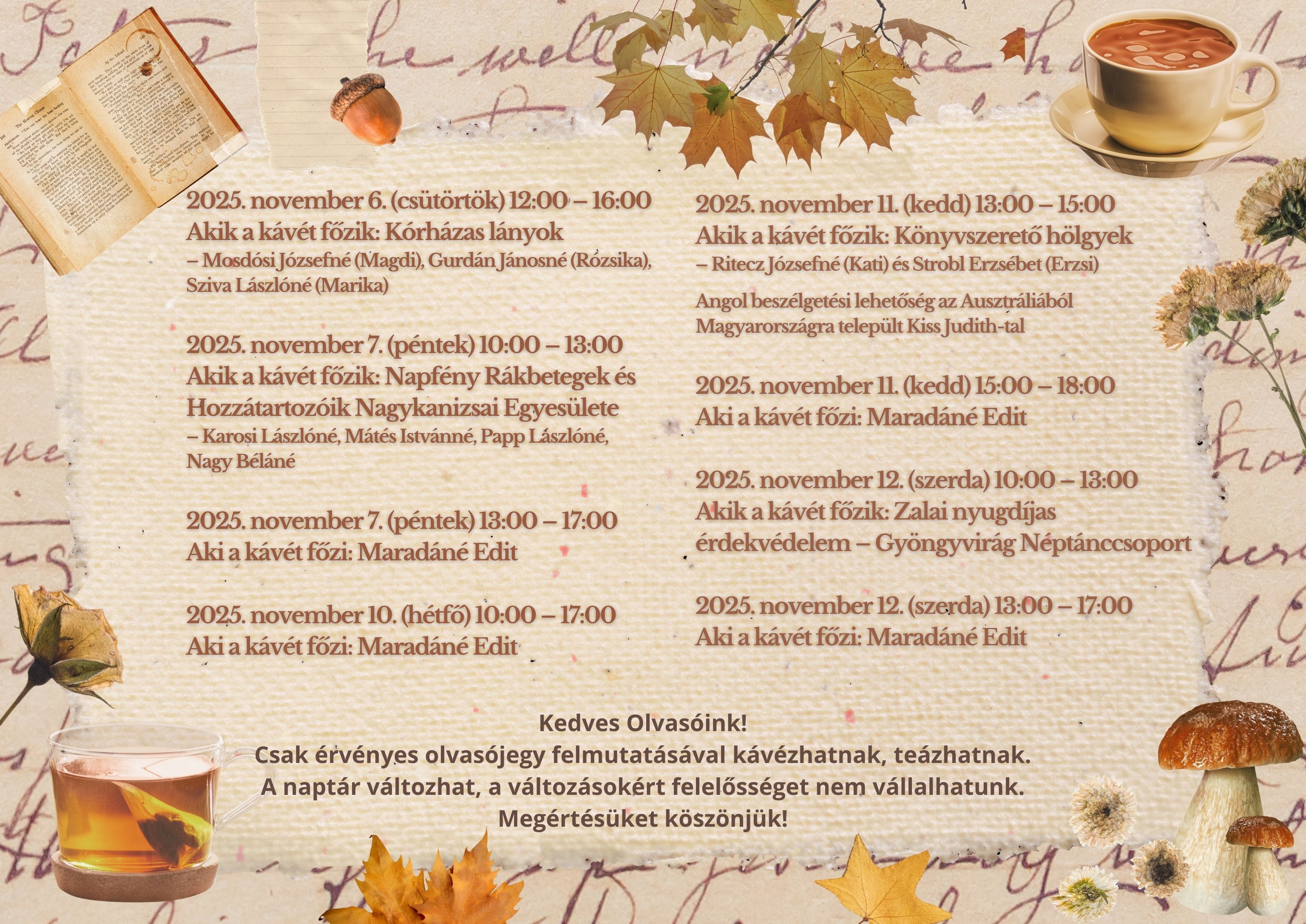A kávézni vágyókat és a kávét önkéntesként főzni vágyókat egyaránt szeretettel várjuk Egy csészényi könyvtár programunkra.