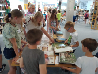 A kiállításnak volt egy felnőtteknek szánt megnyitója és egy másik, amelyik a könyvtár olvasótáborában nyaraló gyerekeknek volt szánva.