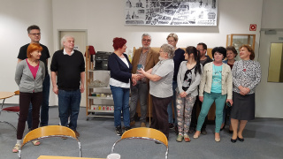 Azok álltak Helyes Zsuzsa köré a könyvtári csésze átadásakor, akikben még mindig él a legutóbbi karácsonyi menü emléke. Köszönjük szépen!