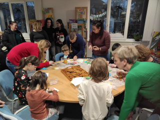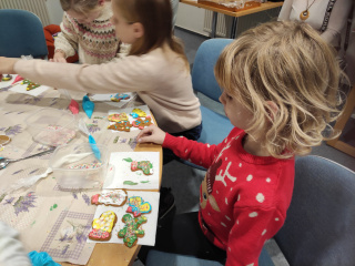 A díszítéshez szükséges finomságokról is ők gondoskodtak, a kis alkotók pedig lelkesen láttak munkához. Az asztaloknál hamarosan szebbnél szebb, illatos és igazán „ennivaló” mézeskalácsok készültek, melyeket a gyerekek büszkén vihettek haza.