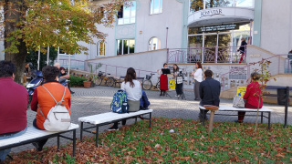 Épületünk előtt egy 3. zenei „akcióra” is sor került, ahol zeneiskolai növendékek és tanáruk mutatkoztak be.