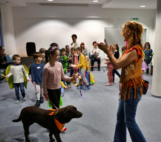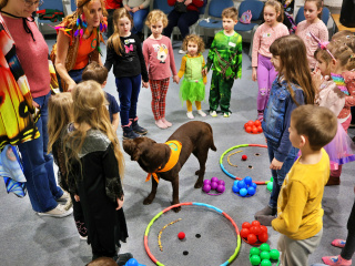 Egy jó hangulatú, színes kavalkád részesei lehettek azok a gyerekek, akik múlt pénteken Nagy Katával és Lakshmi terápiás kutyával együtt farsangoltak a gyerekkönyvtárban.