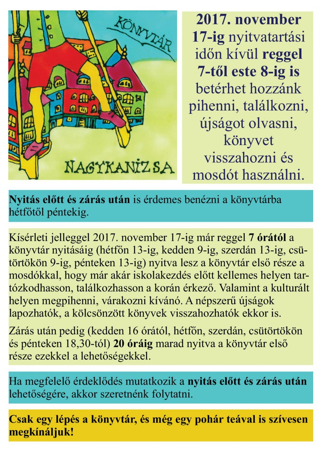 érdeklődőket. Bemutatkoznak a könyvtár csoportjai is (Nagykanizsai