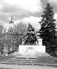 ![]() A 20. honvéd gyalogezred emlékműve, mögötte a Városháza |