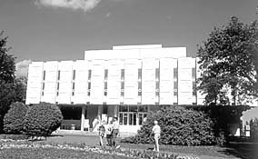 belsőépítésze Máté András volt. Az épület előtt Németh János domborműve, az előcsarnokban Járási Ildikó tűzzománc képsorozata,