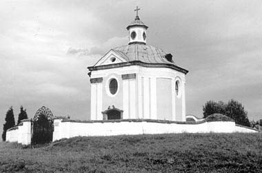 1764-ben Nepomuki Szent János tiszteletére egy kisebb barokk temetőkápolnát emeltek itt. 1823-ban hajóit meghosszabbították