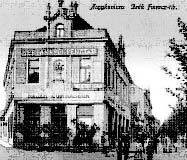 „A Vasemberhez" az épület középső részén, az 1865-ben alapított Unger Ullmann Elek-féle híres vaskereskedés a sarokrészen