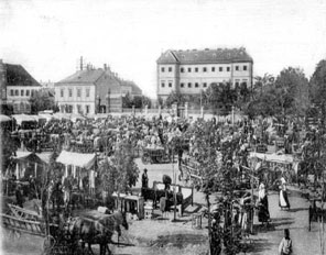![]() Az Erzsébet téri piac egy régi képeslapon |