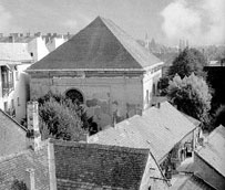 Az akkori rendelkezések szerint a zsinagóga az utcafrontra nem épülhetett, ezért építhették az 1820-as években elé a zsidó